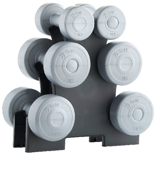 Includes: - 2x 1kg weights - 2x 2kg weights - 2x 3kg weights - 1x stand